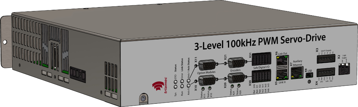 The new TSP700-10 and TSP700-20 servo drives bring the TSP family up to date. Like our TSD series, the TSP700-10 and TSP700-20 are a member of the new family of high-performance and expandable amplifiers. The controller is 100kHz for position and current. Furthermore, various expansion modules are available: sin/cos encoders up to 5MHz/16bit, as well as various A/D converter inputs and a universal module.
