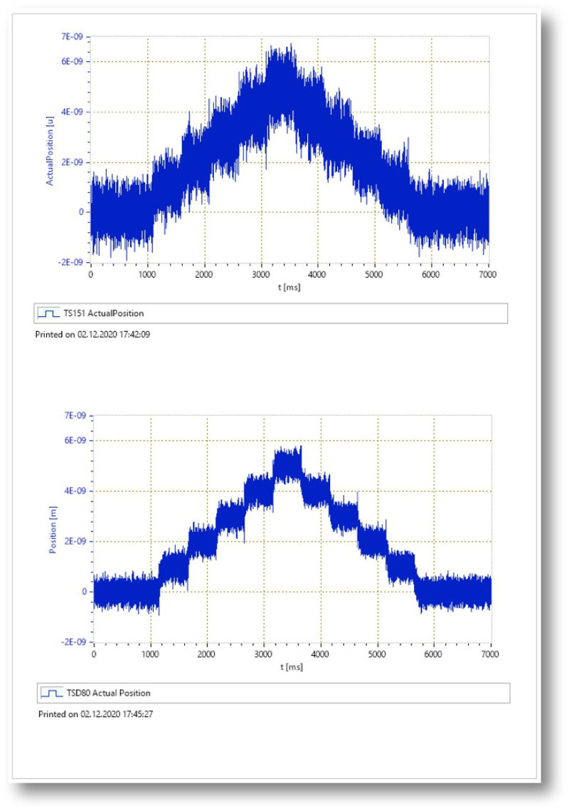 Triamec's TS151, TS351 and TSP700 performed so well against their competitors at the time, that the TSP700 was used as the reference drive for the comparative measurements in the project. The decisive factors for this choice were, on the one hand, the outstanding performance of Triamec's 100kHz control and, on the other hand, the ability to read out and graphically display the encoder values with unrivaled precision at a measurement bandwidth of 100kHz.