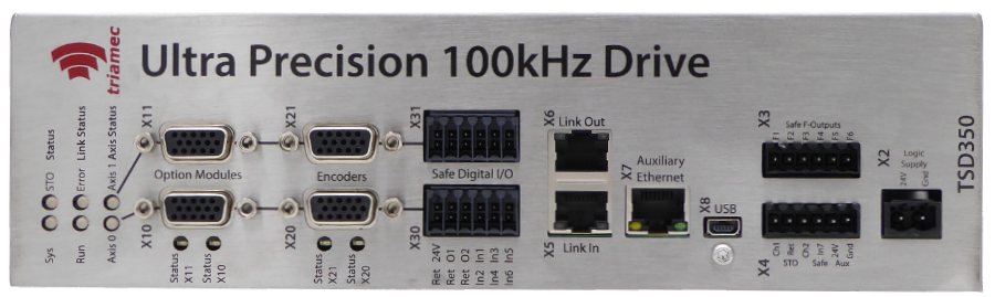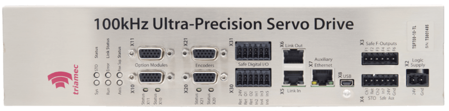 Connectivity to a host PC is through the proprietary Ethernet-based fieldbus Tria-Link or via EtherCAT. Triamec Servo Drives can also be operated independently, without fieldbus.